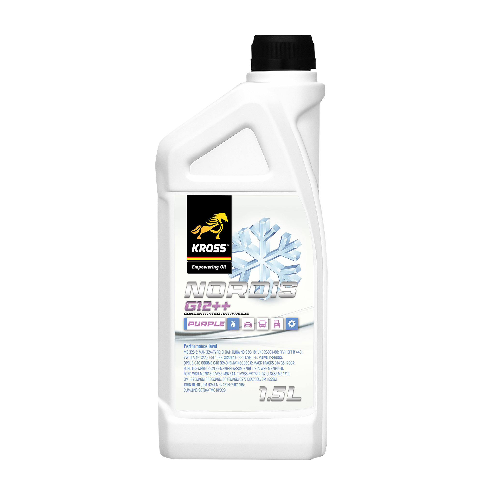 KROSS NORDIS G12++ – antigel auto concentrat, de ultimă generație, cu tehnologie OAT (fără silicați). Oferă protecție completă împotriva înghețului (până la −38 °C), supraîncălzirii și coroziunii, cu durată de viață extinsă de peste 240.000 km.