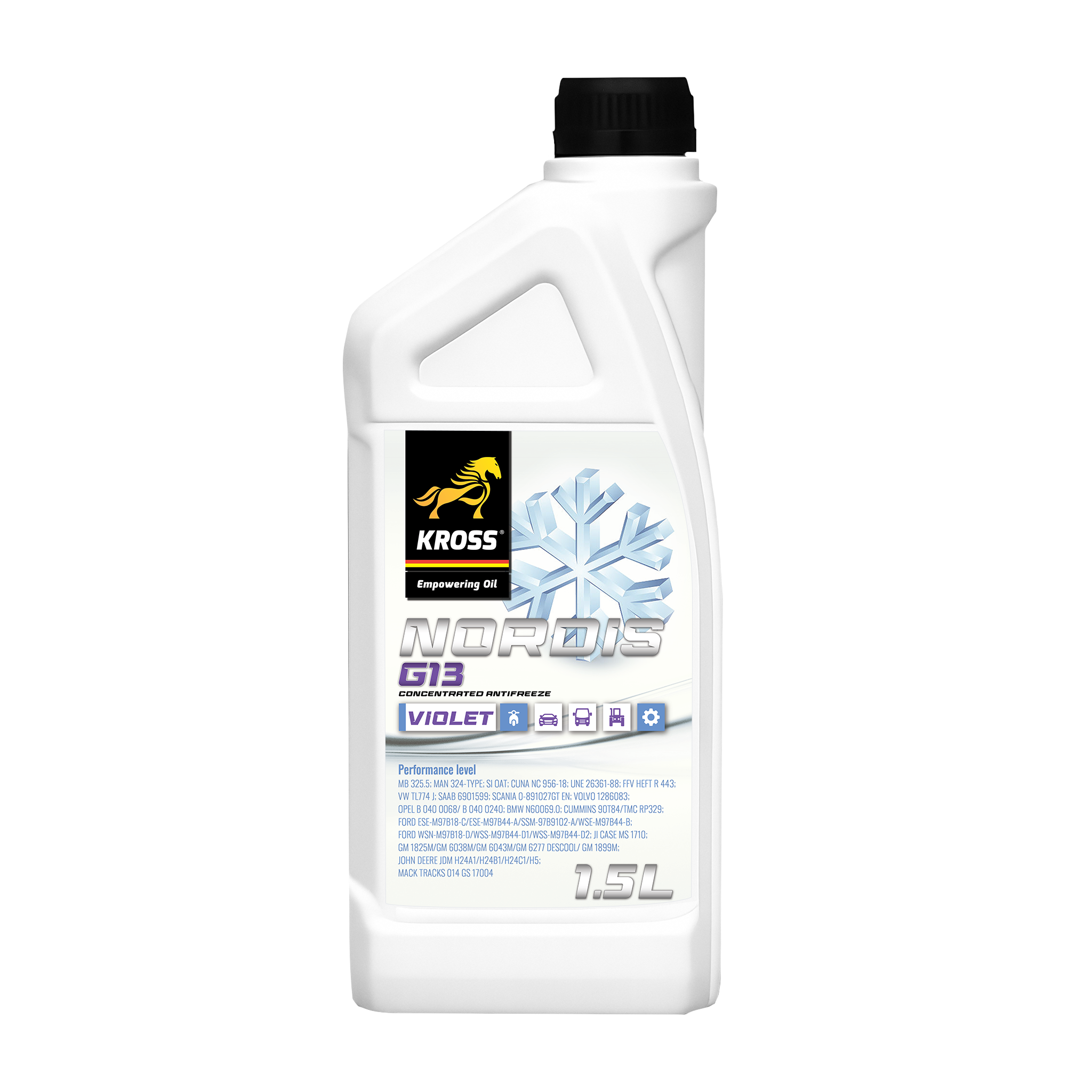 KROSS NORDIS G13 – antigel auto concentrat, de ultimă generație, cu tehnologie OAT (fără silicați). Oferă protecție completă împotriva înghețului (până la −35 °C), supraîncălzirii și coroziunii, cu durată de viață extinsă de peste 240.000 km.